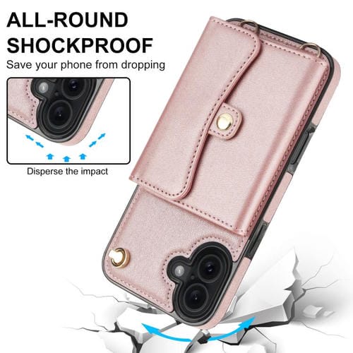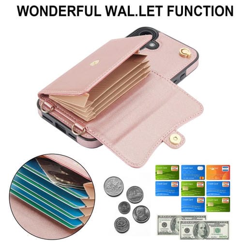 Funda para iPhone 17 con ranura para tarjeta RFID y cordón largo (oro rosa)