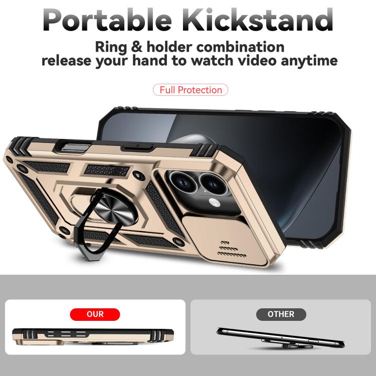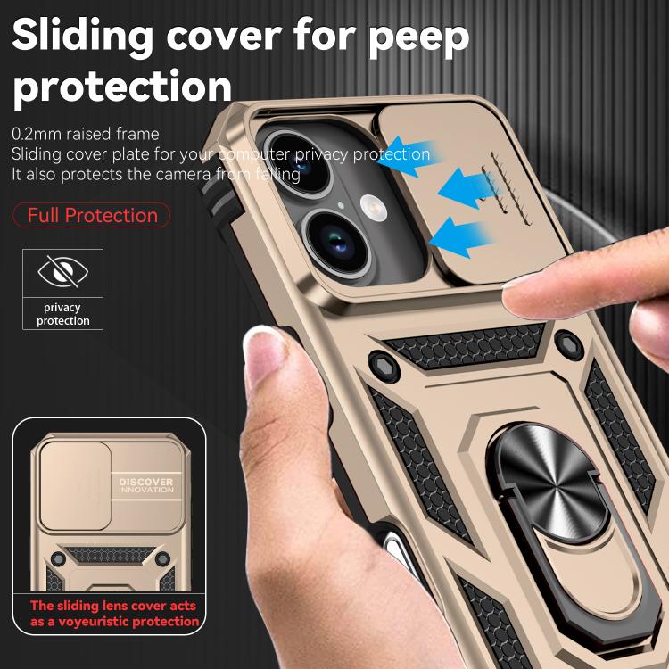 Funda para iPhone 17 con soporte deslizante Camshield (dorada)