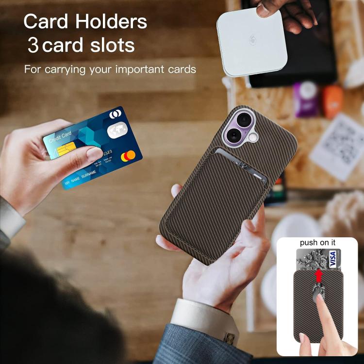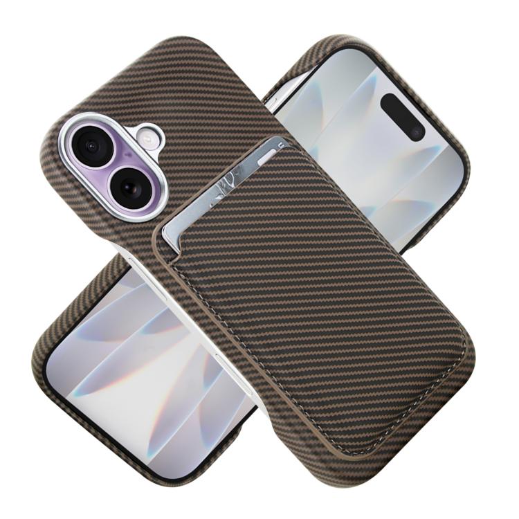 Funda para iPhone 17 con tarjetero magnético MagSafe de fibra de carbono (marrón)