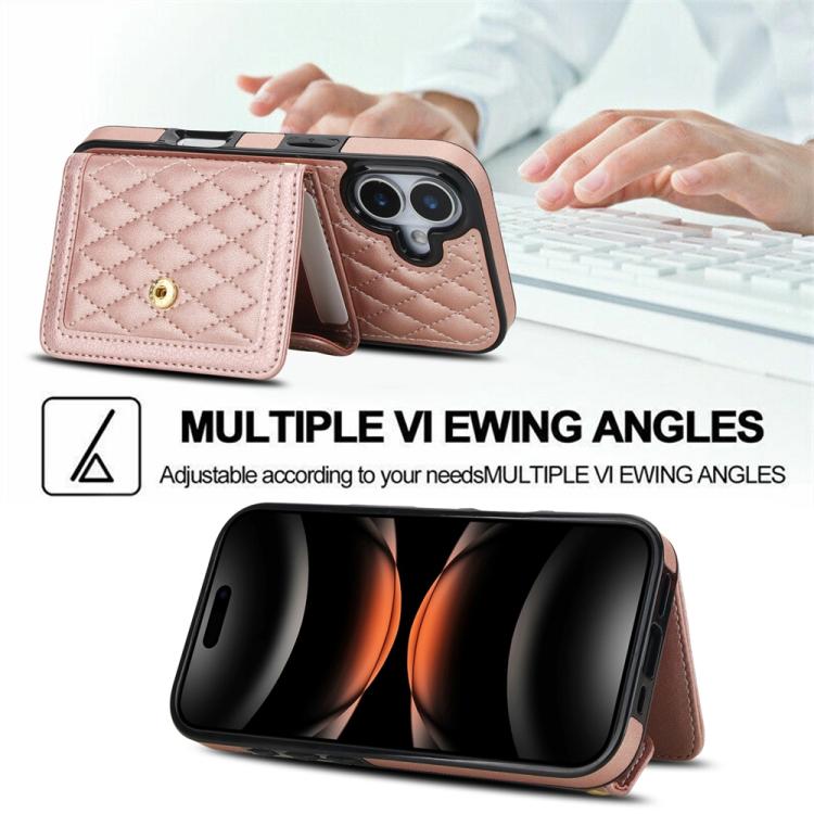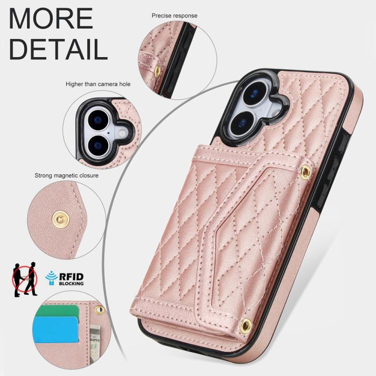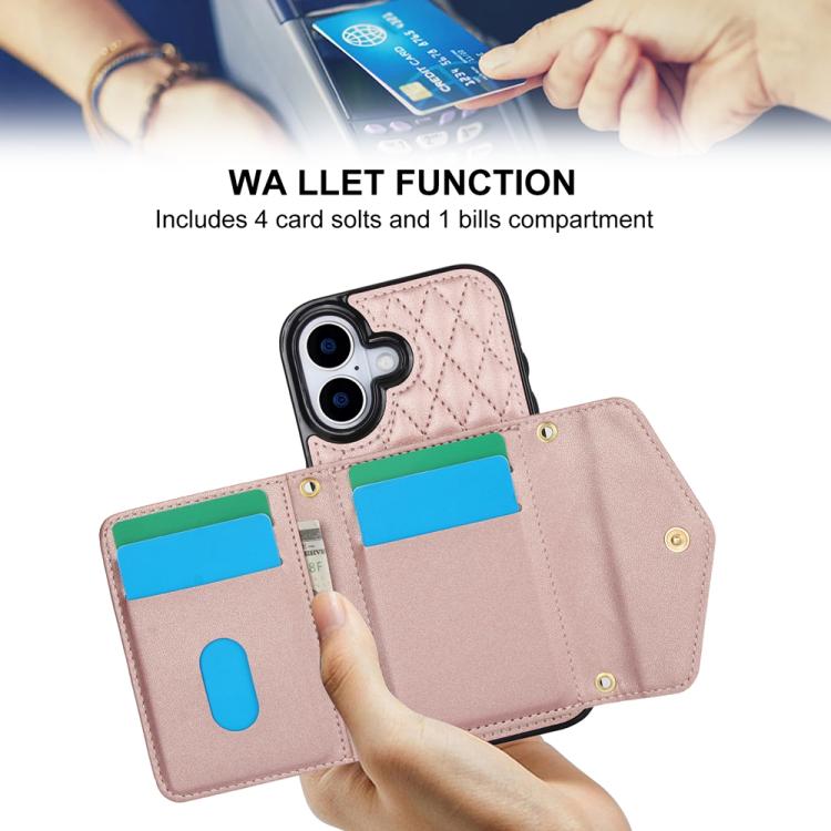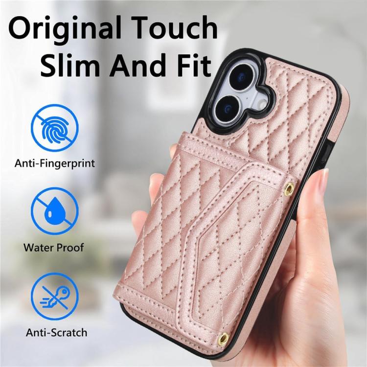Funda para iPhone 17 con textura rómbica y cordón largo (oro rosa)