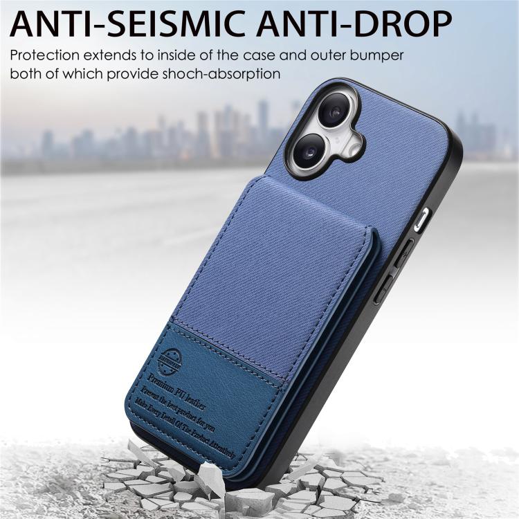 Funda para iPhone 17 de piel y sarga con tapa vertical RFID para tarjetas (azul)