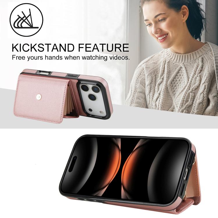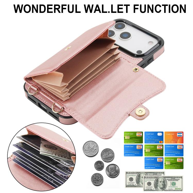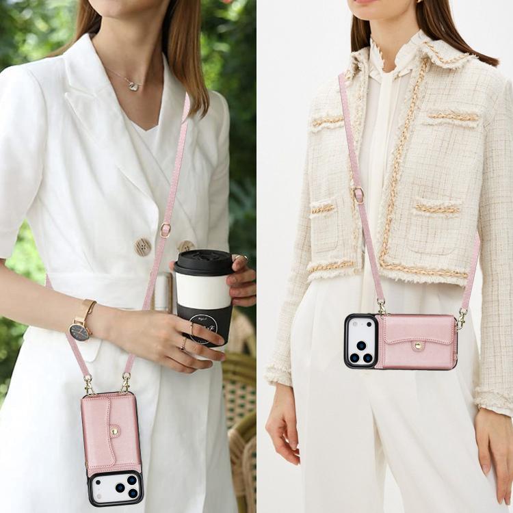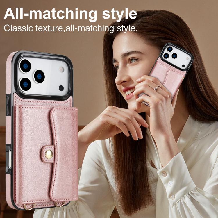 Funda para iPhone 17 Pro con ranura para tarjeta RFID y cordón largo (oro rosa)