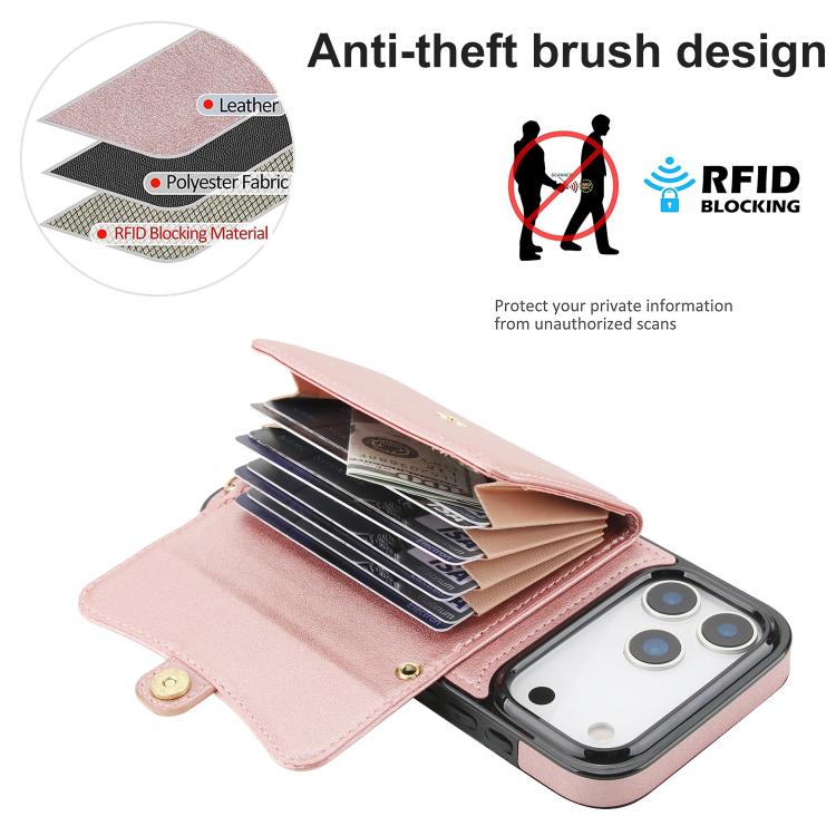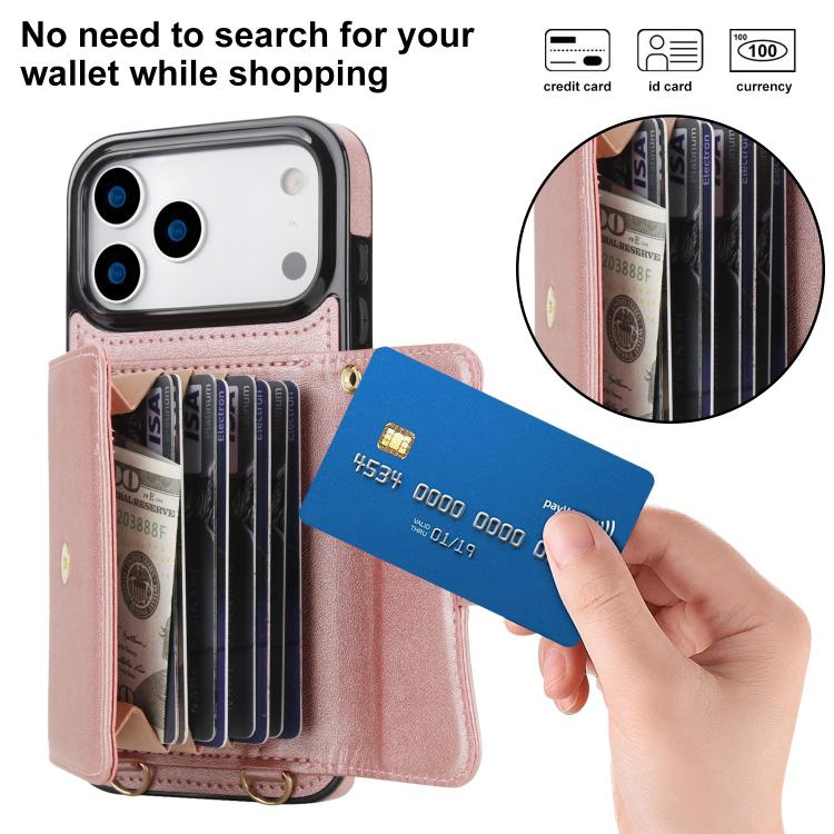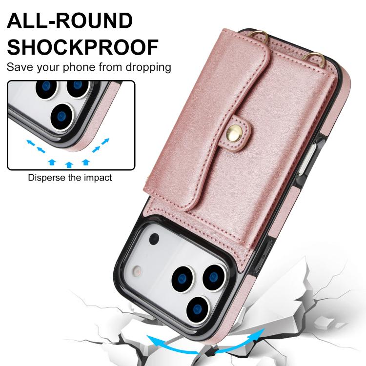 Funda para iPhone 17 Pro Max con ranura para tarjeta RFID y cordón largo (oro rosa)