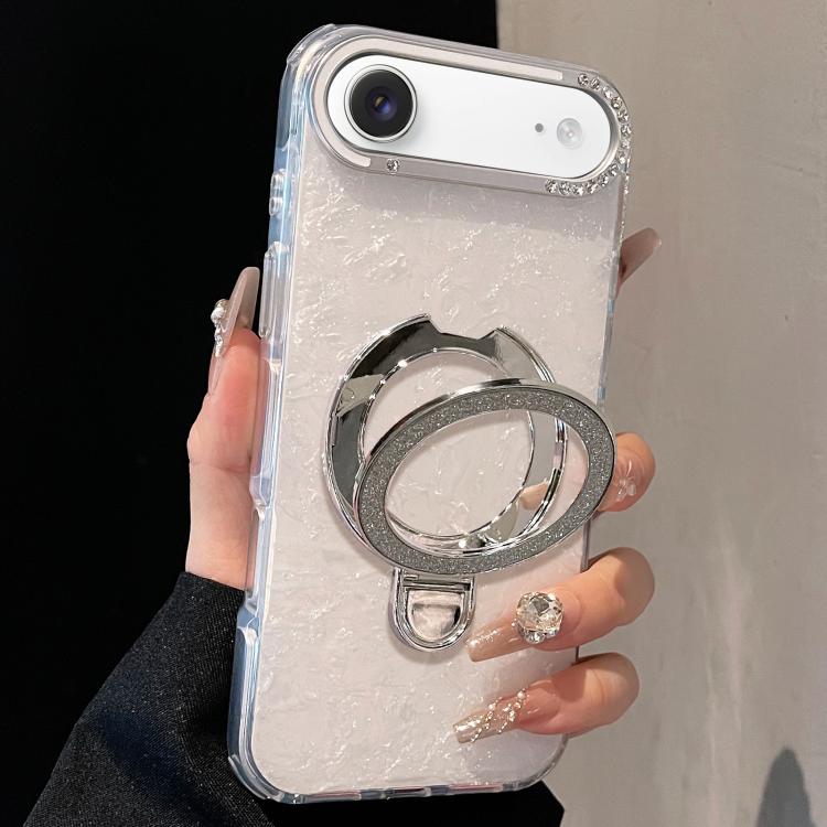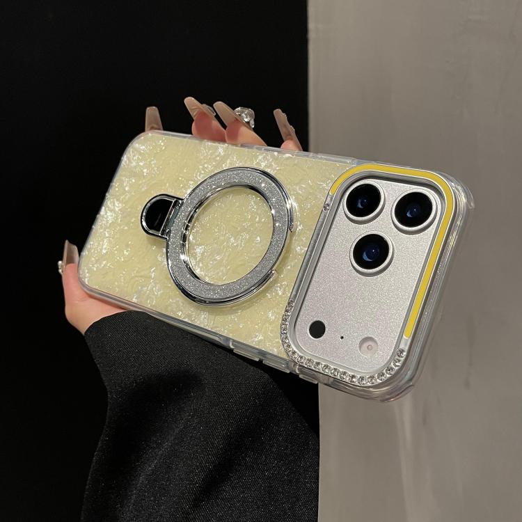 Funda para iPhone Air con carcasa dorada y colorida, diseño estampado en TPU+IMD, con soporte magnético brillante (blanca).