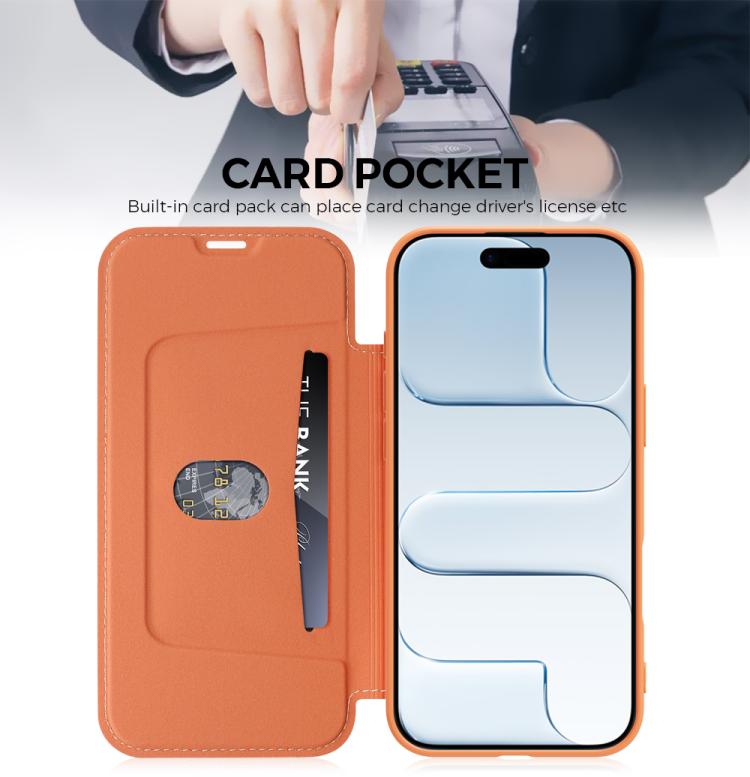 Funda para iPhone Air con tacto de piel sintética tipo piel líquida y ranuras para tarjetas (naranja)