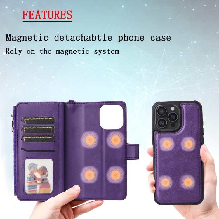 Funda para Teléfono 2 En 1 con Cremallera y Resistente a Los Golpes para iPhone 16 Pro Max (Morado)