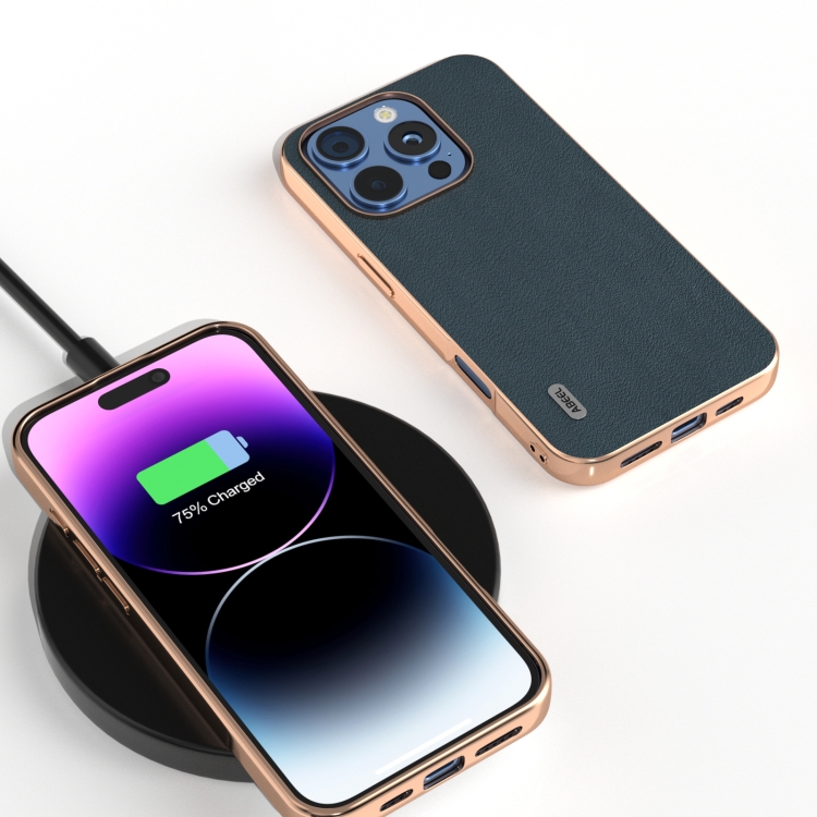 Funda para Teléfono Abeel Cuero Genuino Marco Galvanizado Ondas iPhone 16 Pro Max (Verde)