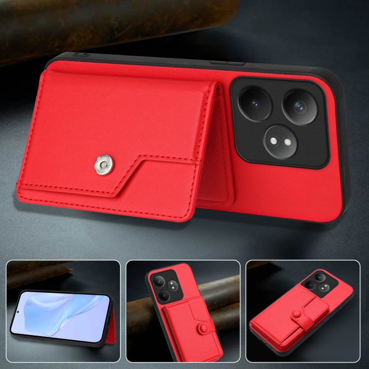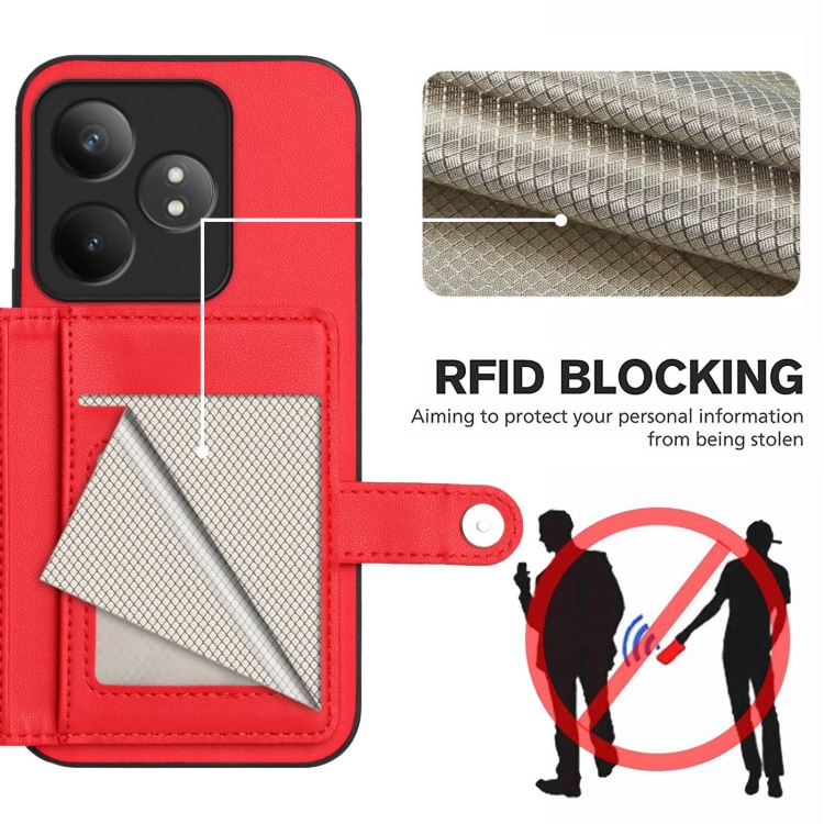 Funda para Teléfono Antirrobo con Botón y TaRJetero Rfid para Realme Gt Neo6 Se (Rojo)