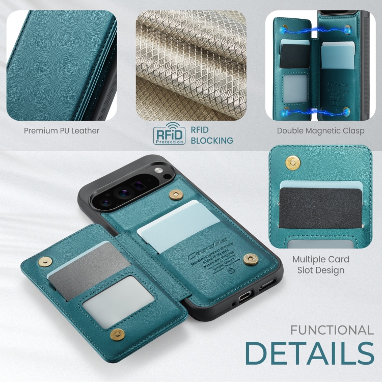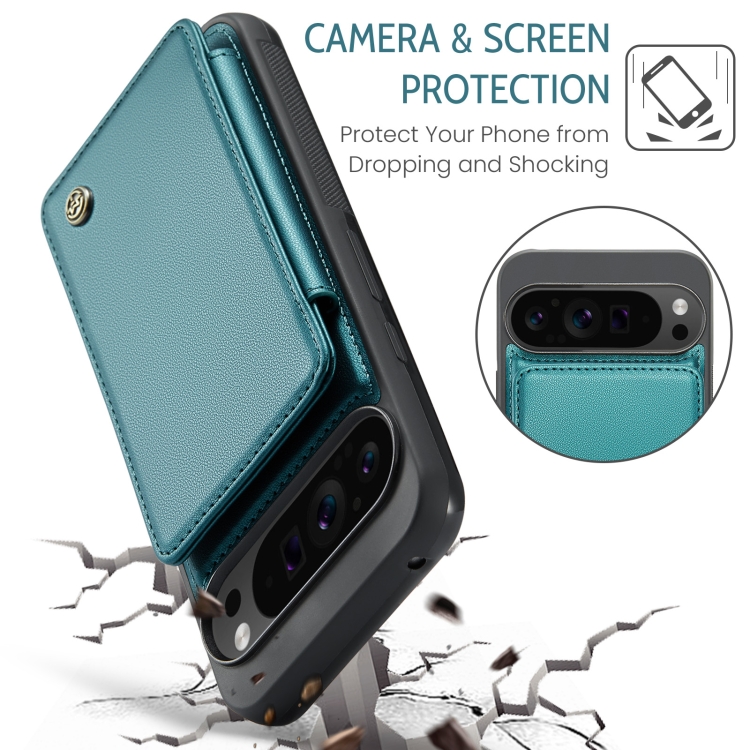 Funda para Teléfono Antirrobo Caseme C22 para Google Pixel 9 Pro XL con Ranuras para Tarjetas y RFID (Verde)