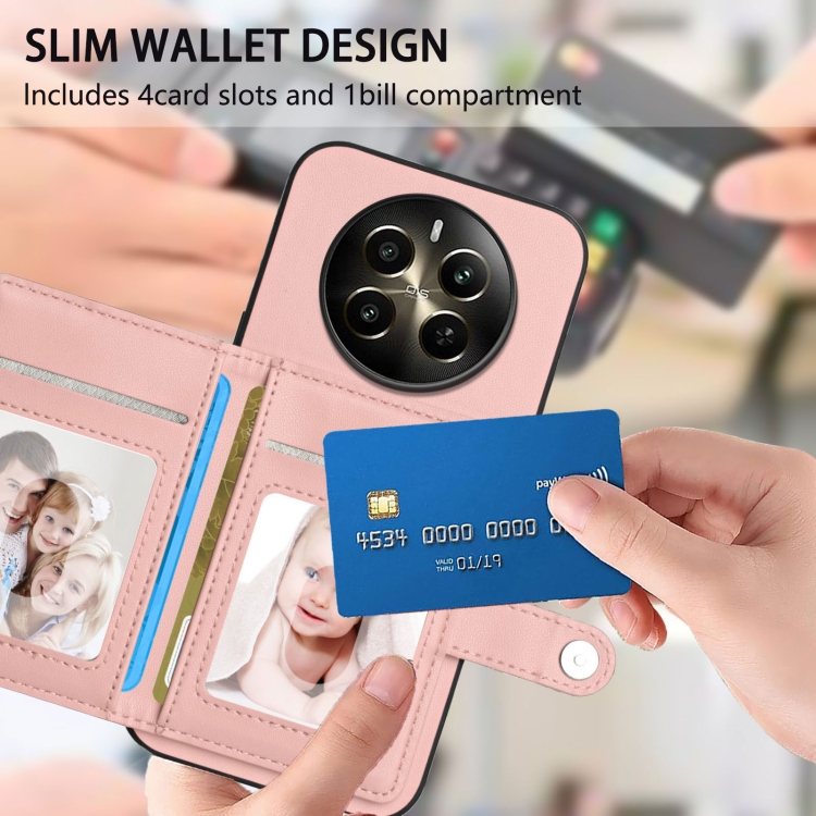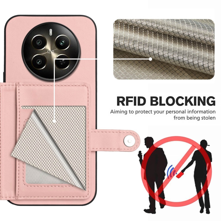 Funda para Teléfono Antirrobo Rfid con Botón para Tarjeta Realme 12+ 5G/P1 5G (Rosa)