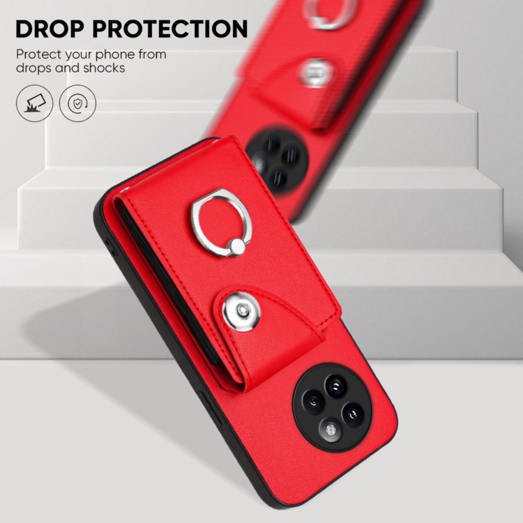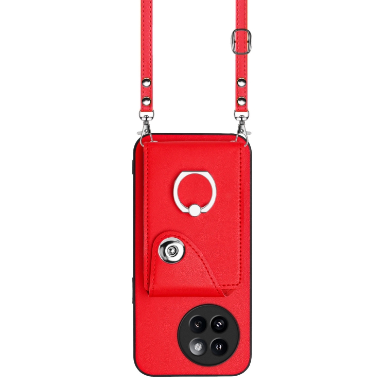 Funda para Teléfono con Aro y TaRJetero para Xiaomi Civi 4 Pro con Cordón Largo (Rojo)