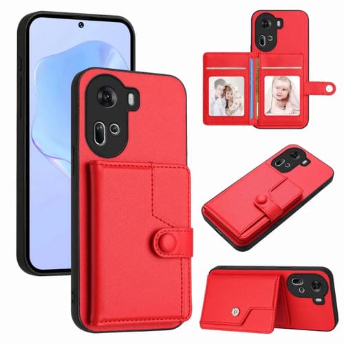 Funda para Teléfono con Botón y Tarjeta Rfid Antirrobo para Oppo Reno11 Global (Roja)