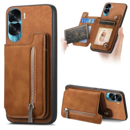 Funda para Teléfono Honor X50I con Cremallera Magsafe Retro (Marrón)