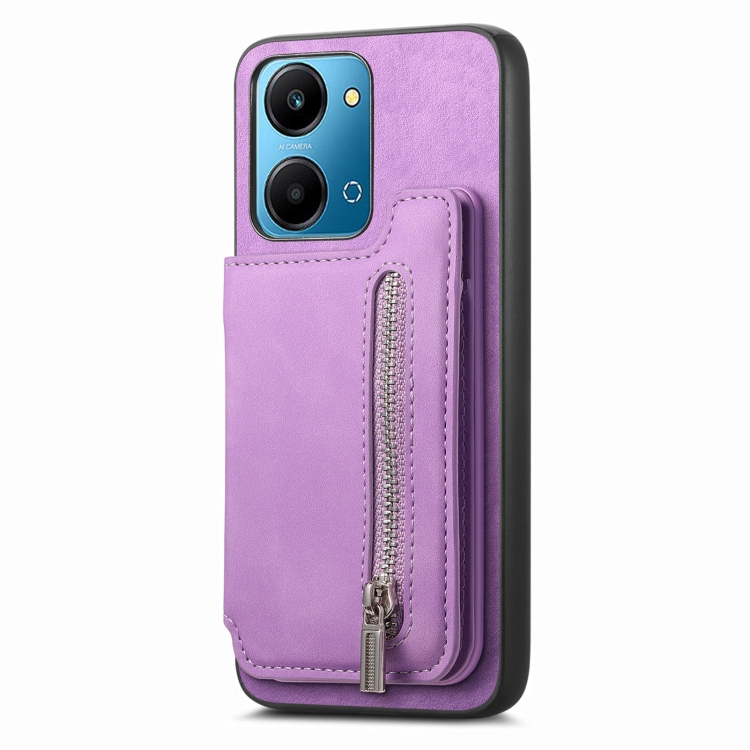 Funda para Teléfono Honor X50I+ con Cremallera Magsafe Retro Tarjetero Cartera (Morado)