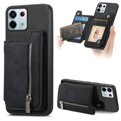 Funda para Teléfono con Cremallera Magsafe Retro para Redmi Note 13 Pro 5G/Poco X6 5G (Negra)