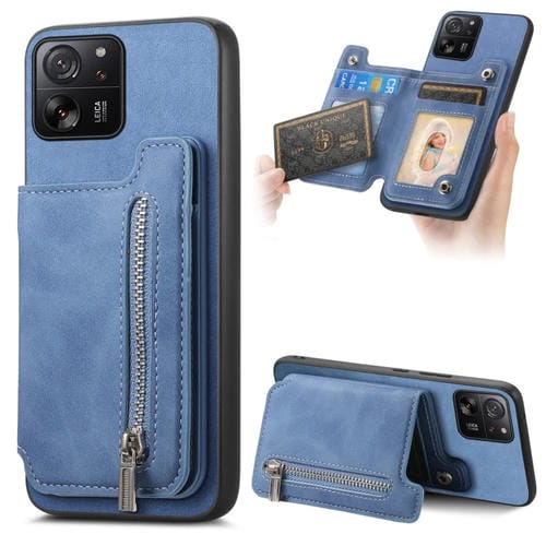 Funda para Teléfono con Cremallera Magsafe Retro para Xiaomi 13T/13T Pro (Azul)