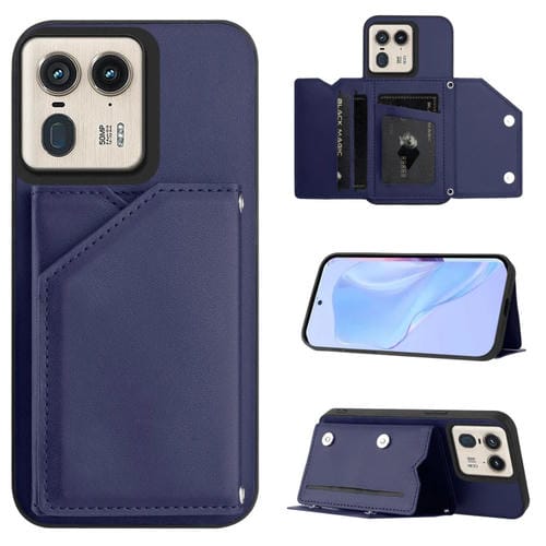 Funda para Teléfono Motorola Moto X50 Ultra con 4 Ranuras para Tarjetas y Correa (Azul)