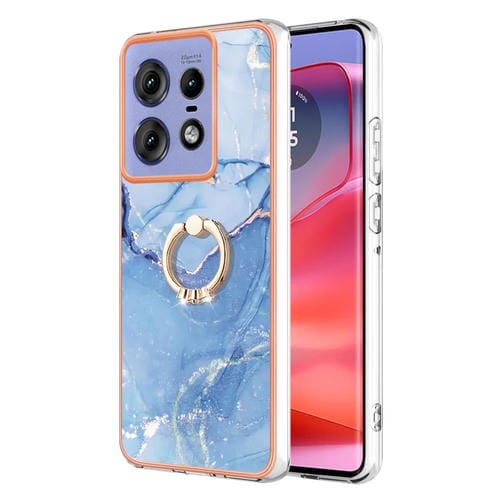 Funda para Motorola Edge 50 Pro con Imd Doble Cara y Galvanoplastia Mármol con Anillo (Azul)