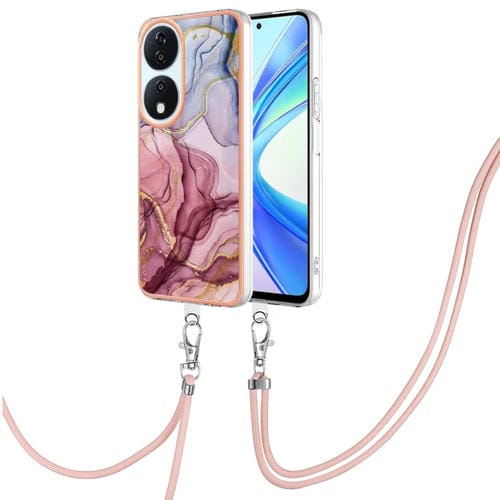 Funda para Honor X7B 4G/5G con Imd Doble Cara y Revestimiento Mármol Galvanizado con Cordón (Rojo Rosa)