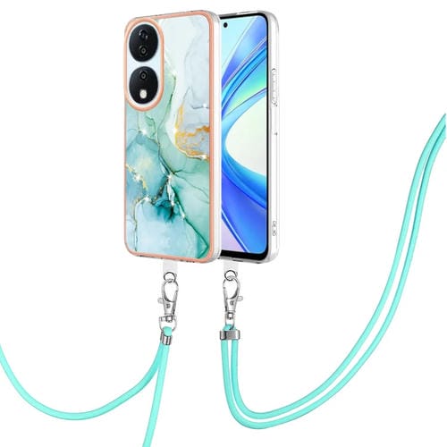 Funda para Teléfono Honor X7B 4G/5G con IMD Doble Cara Mármol Galvanizado y Cordón (Verde)