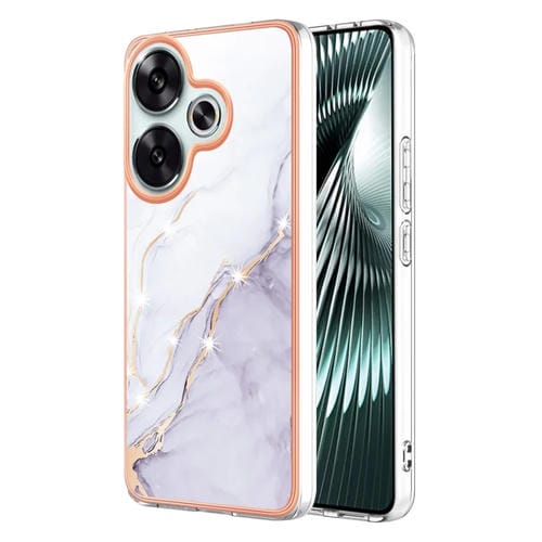 Funda para Teléfono con Revestimiento de Mármol Galvanizado de Doble Cara Imd para Xiaomi Poco F6 5G (Blanco 006)