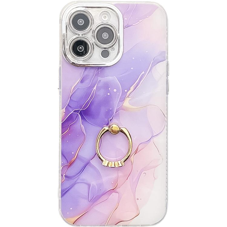 Funda para Teléfono iPhone 16 Pro Max Soporte de Anillo Textura Mármol Galvanizado (Púrpura S3)