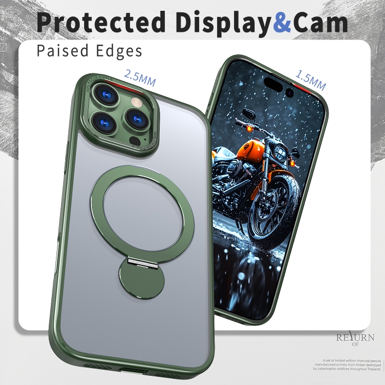 Funda para Teléfono Wing Series Gen2 con Soporte de Anillo de Metal Magsafe para iPhone 15 Pro Max (Verde)