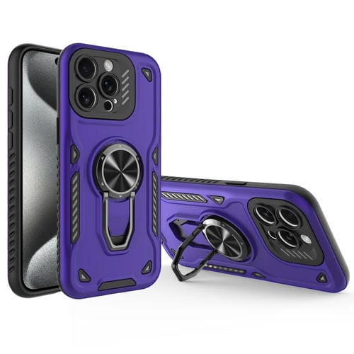 Funda para Teléfono iPhone 15 Pro Soporte Giratorio Metal TPU PC (Morado Oscuro)