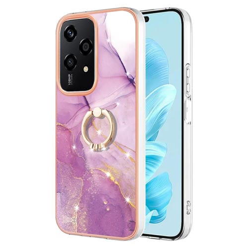 Funda para Teléfono Honor 200 Lite con Soporte para Anillo y Revestimiento Mármol Imd TPU (Púrpura)