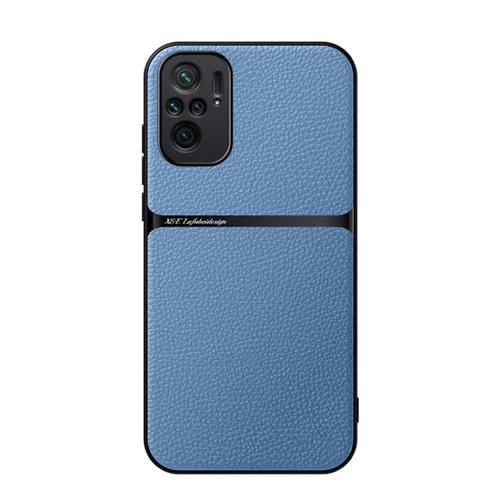 Funda para Teléfono con Tapa Magnética de Cuero Litchi con Protección Total a Prueba de Golpes para Redmi Note 10 4G/Note 10S (Azul)