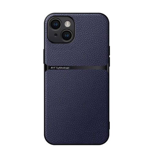 Funda para Teléfono iPhone 14 con Tapa Magnética de Piel de Lichi a Prueba de Golpes (Azul Marino)