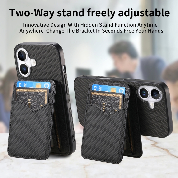 Funda para Teléfono iPhone 16 Plus con Tapa Vertical Tipo Tarjeta Magsafe Fibra de Carbono (Negra)