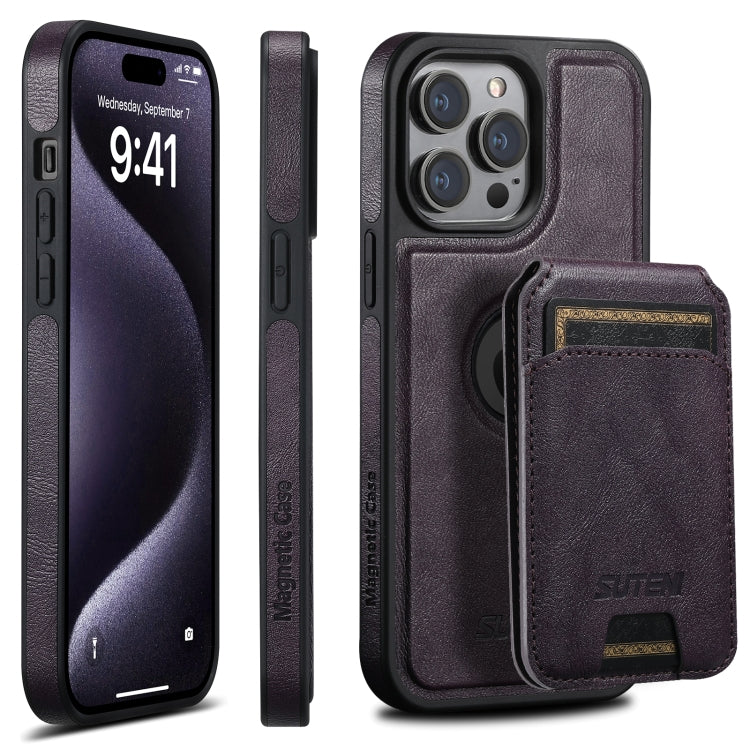 Funda para Teléfono Suteni M2 Oil Wax con Tarjetero Horizontal Magsafe para iPhone 16 Pro (Morado)