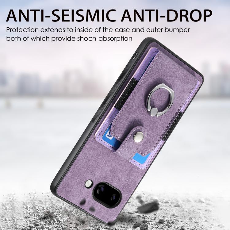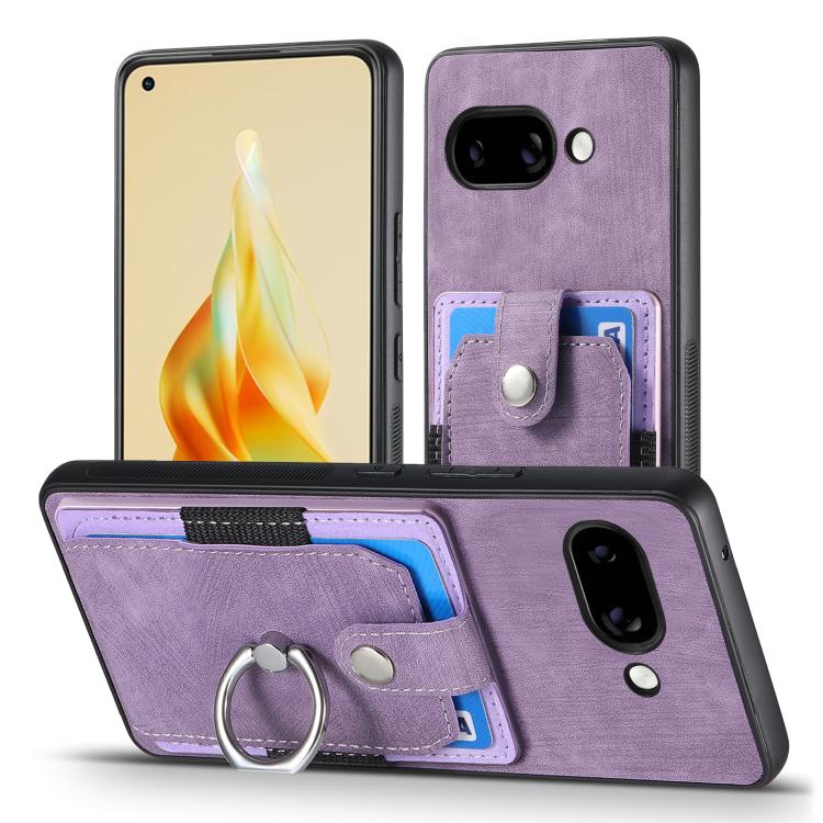 Funda para Teléfono Google Pixel 9A con Tarjetero y Anillo Tacto de Piel (Morado)
