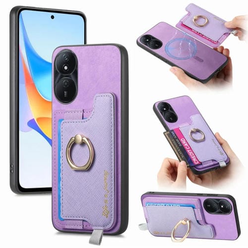 Funda para Teléfono Honor Play 50 Plus 5G con Tarjetero y Anillo de Cuero Retro Magsafe (Morado)