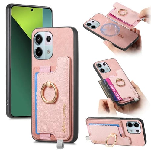 Funda para Teléfono con TaRJetero y Anillo de Cuero con Diseño Retro Magsafe para Redmi Note 13 Pro 5G/Poco X6 5G (Rosa)