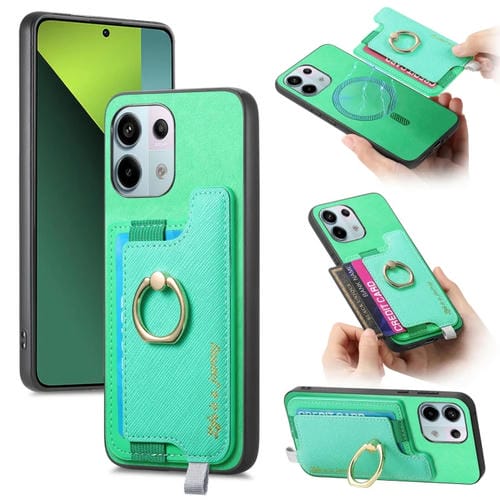 Funda para Teléfono con TaRJetero y Anillo de Cuero con Diseño Retro Magsafe para Redmi Note 13 Pro 5G/Poco X6 5G (Verde)