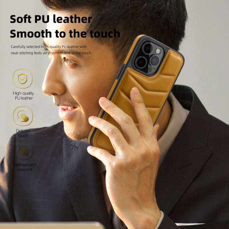 Funda para teléfono iPhone 11 con tarjetero y diseño chaqueta de plumas y Magsafe (Marrón)