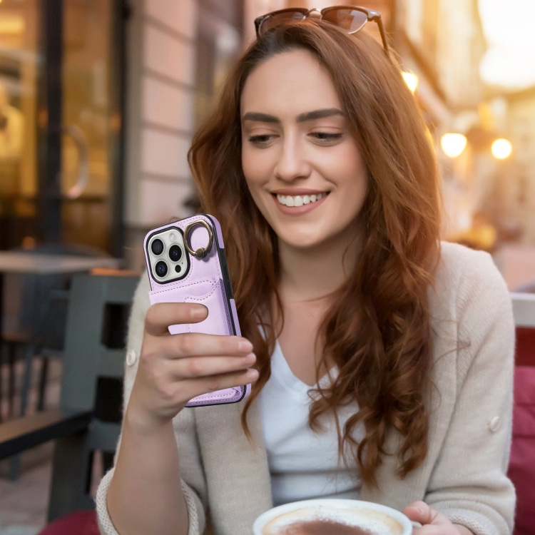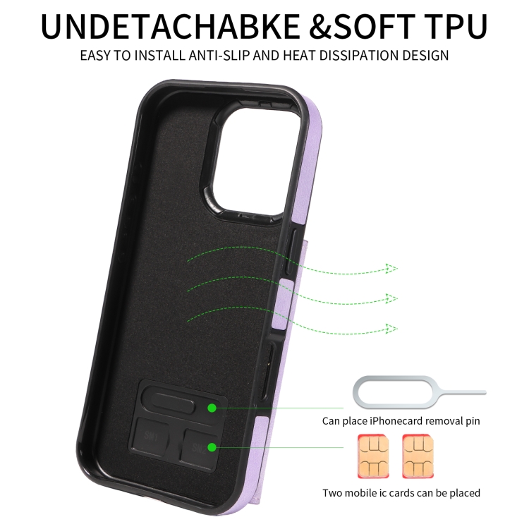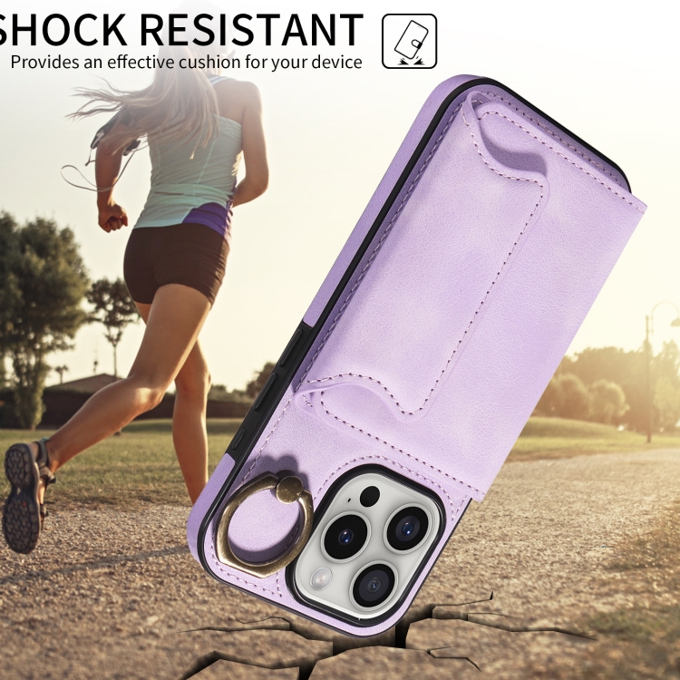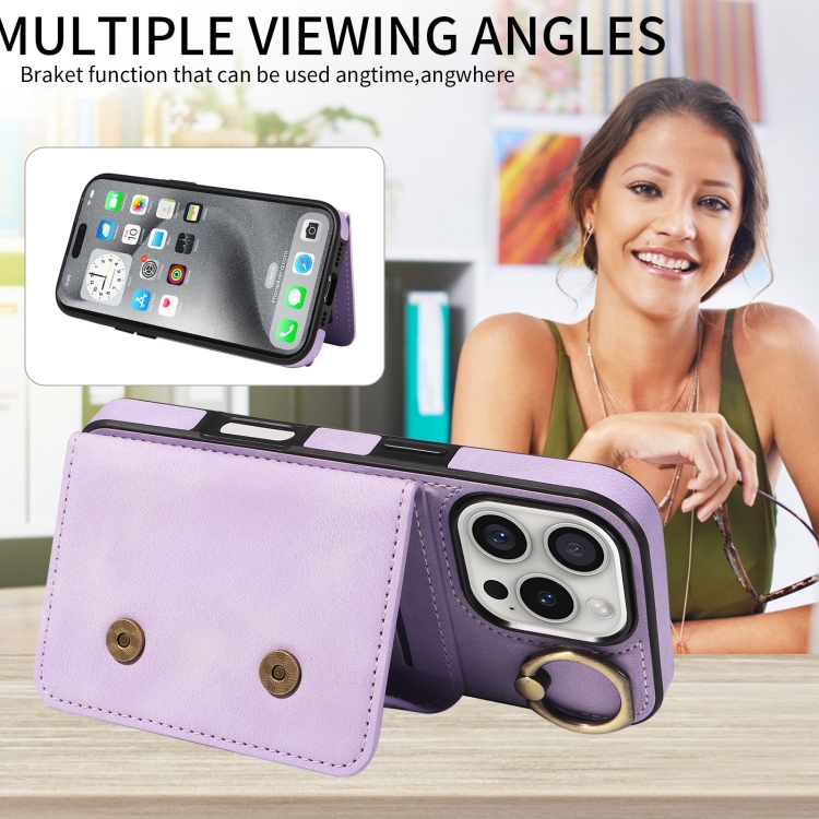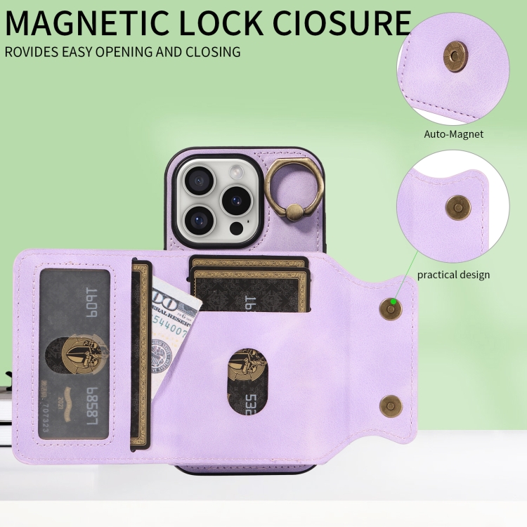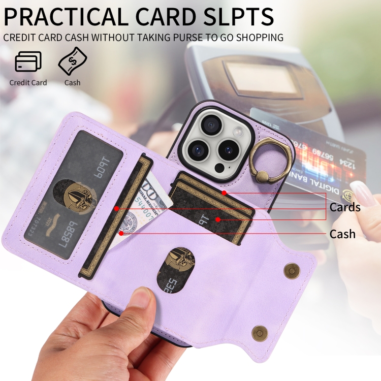 Funda para Teléfono iPhone 16 Pro con Tarjetero y Hebilla de Anilla (Morado)