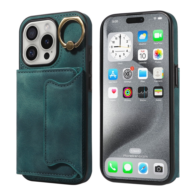Funda para Teléfono iPhone 16 Pro con Tarjetero y Hebilla de Anilla (Verde)