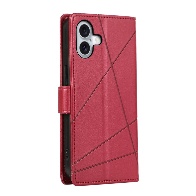 Funda para Teléfono Cuero Genuino Pu iPhone 16 Plus Líneas En Relieve (Rojo)
