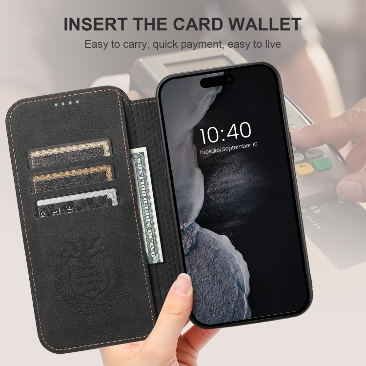 Funda para teléfono Suteni J06 cuero retro mate litchi para iPhone 16 Plus (Negro)