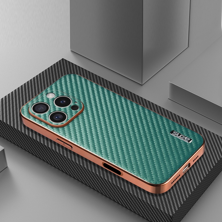 Funda para Teléfono Azns iPhone 16 Pro Textura Fibra de Carbono Borde Galvanizado (Verde)