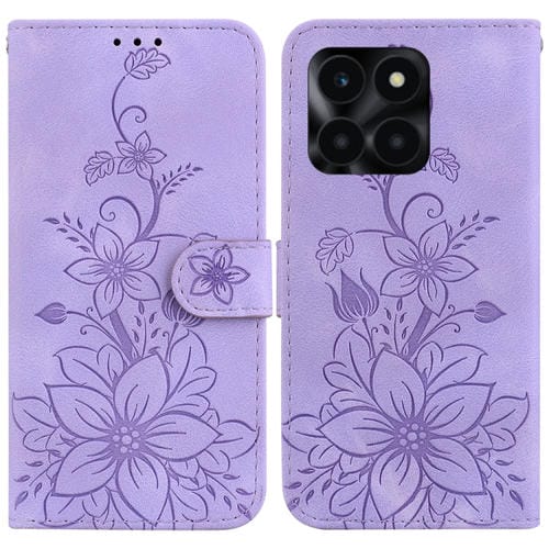 Funda para Teléfono Honor X6A de Cuero con Relieve Lily (Púrpura)