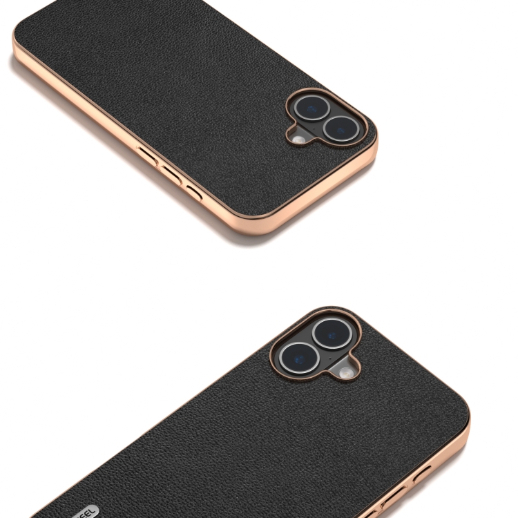 Funda para Teléfono Luolai Cuero Genuino Marco Galvanizado Abeel iPhone 16 Plus (Negro)