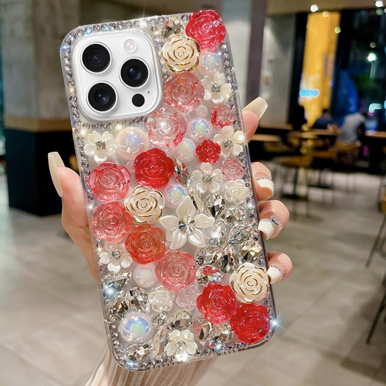 Funda para Teléfono PC iPhone 16 Pro Diseño Diamante Perlado y Rosa (Rojo)