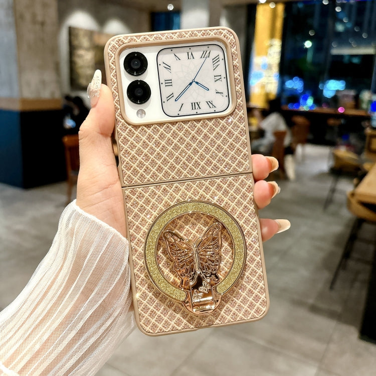 Funda para Teléfono Huawei Nova Flip con Diseño de Rombos y Diamantes Brillantes para PC con Soporte (Dorado)