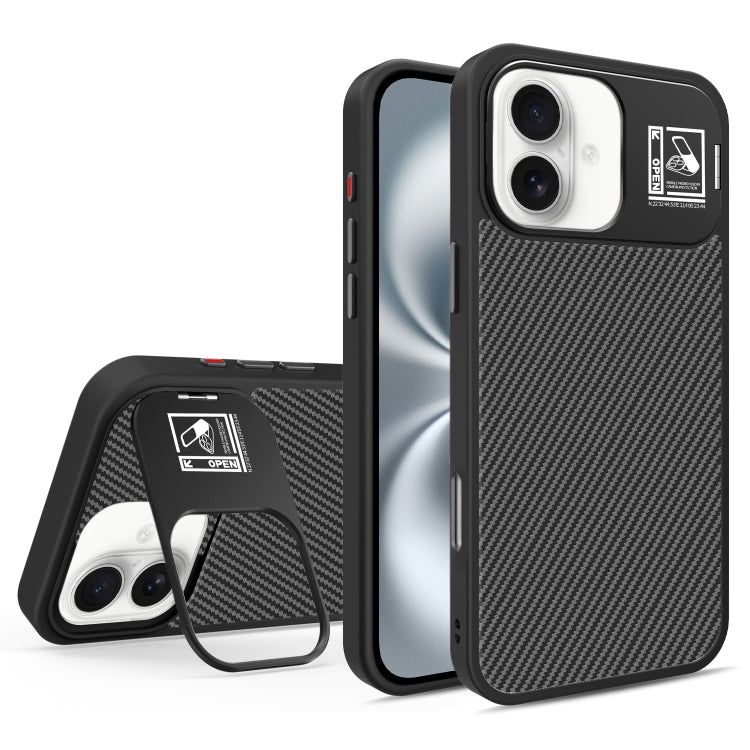 Funda para Teléfono Magsafe Fibra de Carbono Soporte Plegable iPhone 16 (Negro)