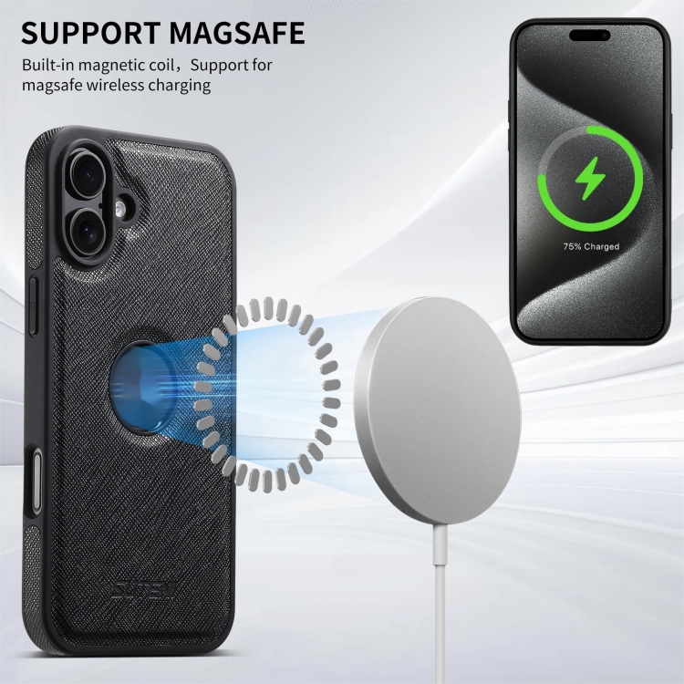 Funda para Teléfono Suteni G1 Cross Texture Magsafe para iPhone 16 (Negra)
