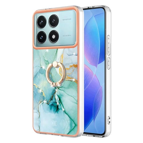 Funda para Teléfono Xiaomi Poco F6 Pro 5G con Galvanoplastia de Mármol Imd TPU y Soporte para Anillo (Verde 003)